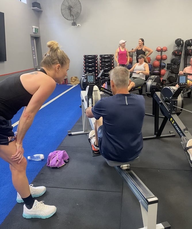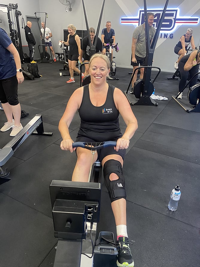 Jane and Simon kicked things off in Kinloch, aiming for 10km on the row erg. Once they got into the rhythm, they powered through 22km before handing the baton to the rest of the team at F45 Cambridge.